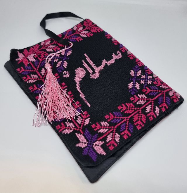 Okładka na zeszyt/książkę, ręcznie haftowana w palestyńskim stylu, z wyhaftowanym słowem ‘POKÓJ’